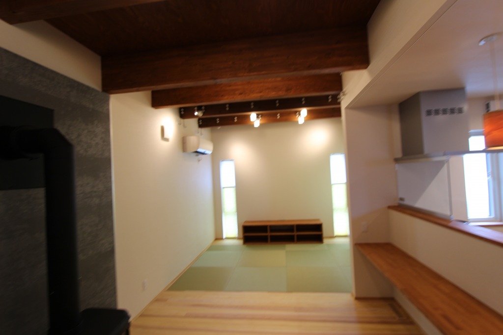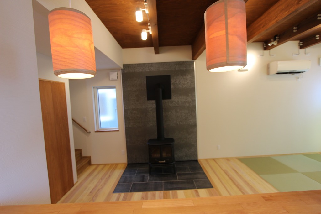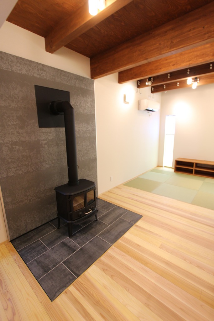 2019年新築 黒鉄の家 用途 : 住宅 構造 : 木造 規模 : 地上2階 外観の写真を掲載出来ないのが残念ですが、ガルバリウム鋼板の黒光りした外観とSOLID外壁材の組み合わせで黒鉄のように光る外観を持つ住宅です。 鋳物の薪ストーブにタイルも黒鉄にコーディネート。 モダンですが、構造体を表すことで木のぬくもりも取り組んでいます。