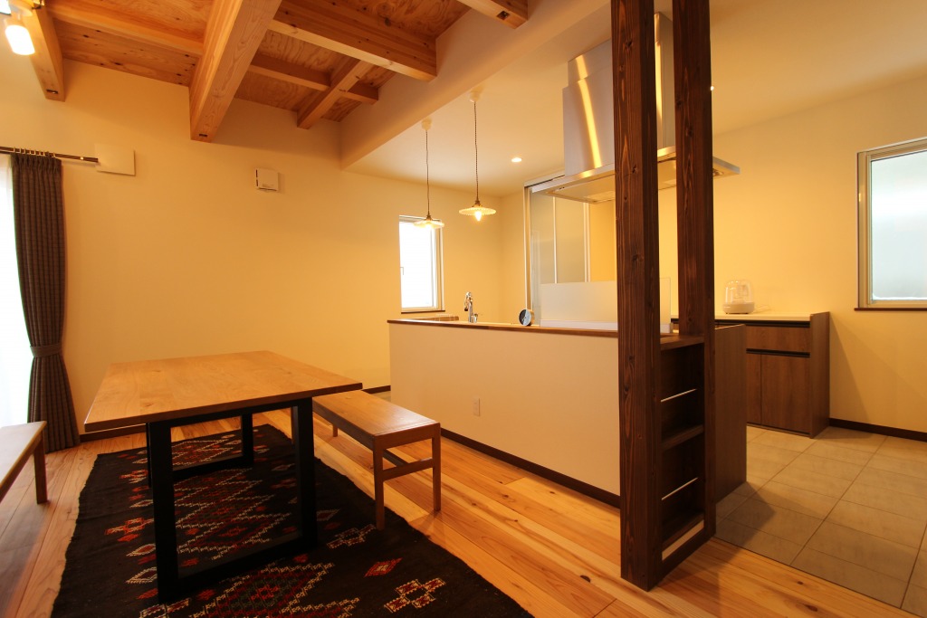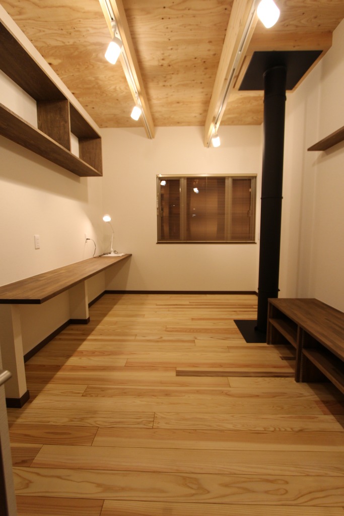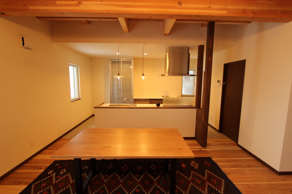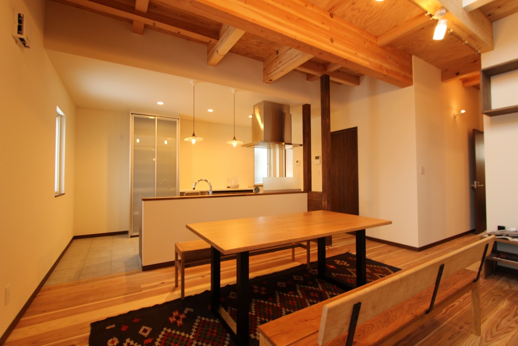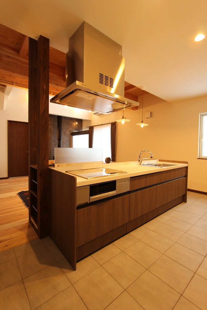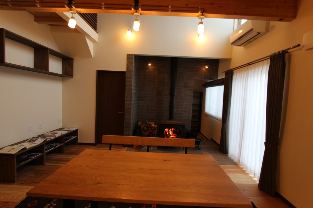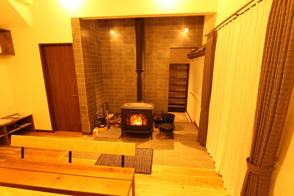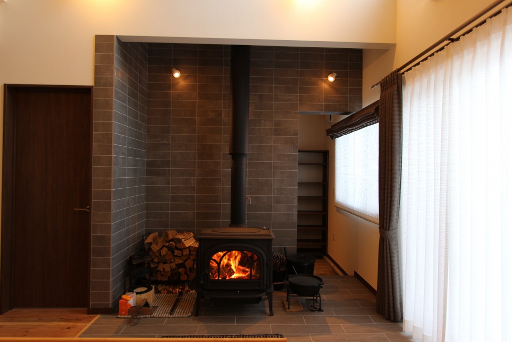 2017年新築 薪ストーブと暮らす家 用途 : 住宅 構造 : 木造 規模 : 地上2階 薪ストーブ一台で大家族の暮らす50坪近い住宅を暖めています。 吹き抜けと温度センサー付きファンを利用して、リビングから各部屋に暖かい空気をむらなく循環させます。 薪ストーブで料理もでき家族団らんに最適です。